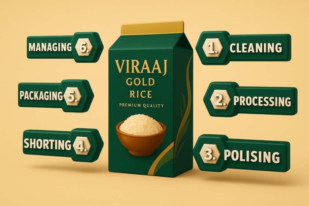 At Viraaj Gold, we take pride in every grain we produce and deliver. Our modern rice milling and processing facilities are designed to meet the highest international standards, ensuring that every batch maintains purity, consistency, and aroma. From sourcing premium paddy to hygienic packaging, each step in our process reflects our dedication to excellence.